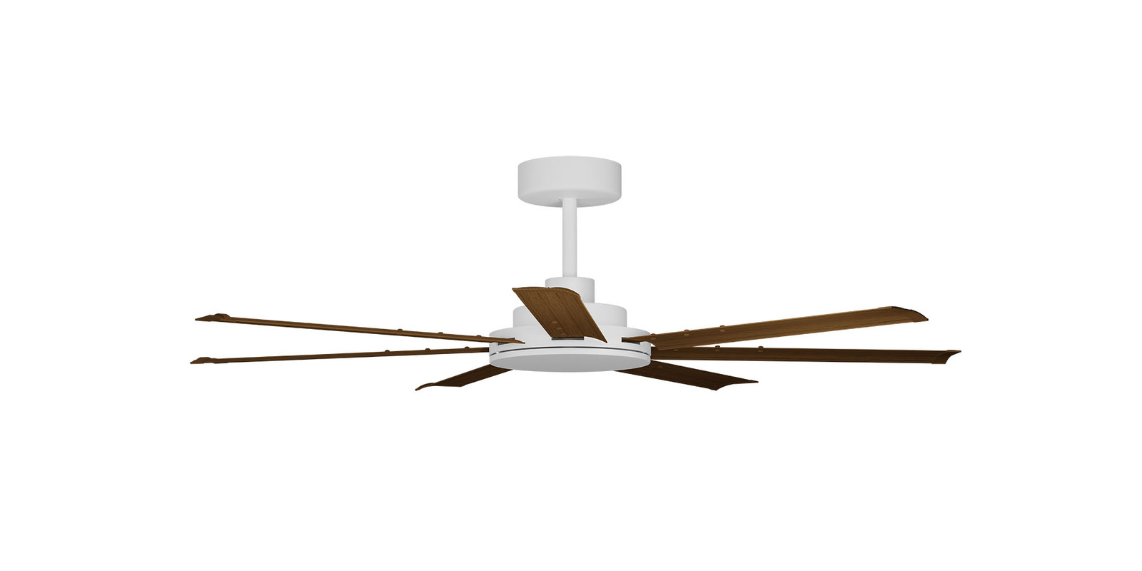 The Calibo Alula Smart DC 60 Inch White Ceiling Fan with Koa Blades ALU-760W-KO offers a clean white motor paired with rich koa-look blades for a warm modern statement. Built for large rooms and covered outdoor applications, this smart DC ceiling fan delivers powerful airflow, efficient performance and flexible control through app integration and a 6-speed remote. Designed for year-round comfort, it includes reverse mode, timers, sea breeze and security functions. Available through Alstra Lighting, this model is ideal for customers searching for a white ceiling fan with dark timber-look blades, smart 60 inch DC fan or designer ceiling fan for large spaces.