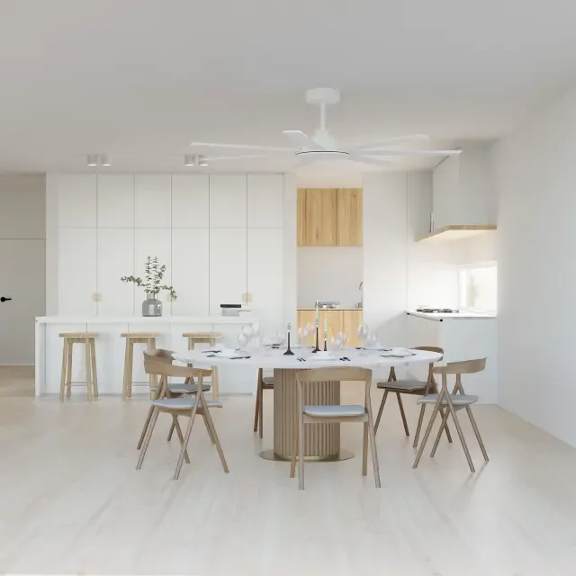 The Calibo Alula Smart DC 80 Inch White Ceiling Fan ALU-780-WH is an oversized smart DC ceiling fan designed to move air efficiently through expansive interiors and covered outdoor areas. Finished in white with durable aluminium blades, this premium 80 inch ceiling fan delivers exceptional airflow, quiet operation and convenient smart functionality for modern large-scale spaces. The Alula includes app control and a 6-speed remote with timer, sea breeze, security and reverse functions for flexible everyday comfort. Available through Alstra Lighting, this model is ideal for customers searching for an 80 inch white ceiling fan, oversized smart ceiling fan or premium DC fan for large rooms and alfresco areas.