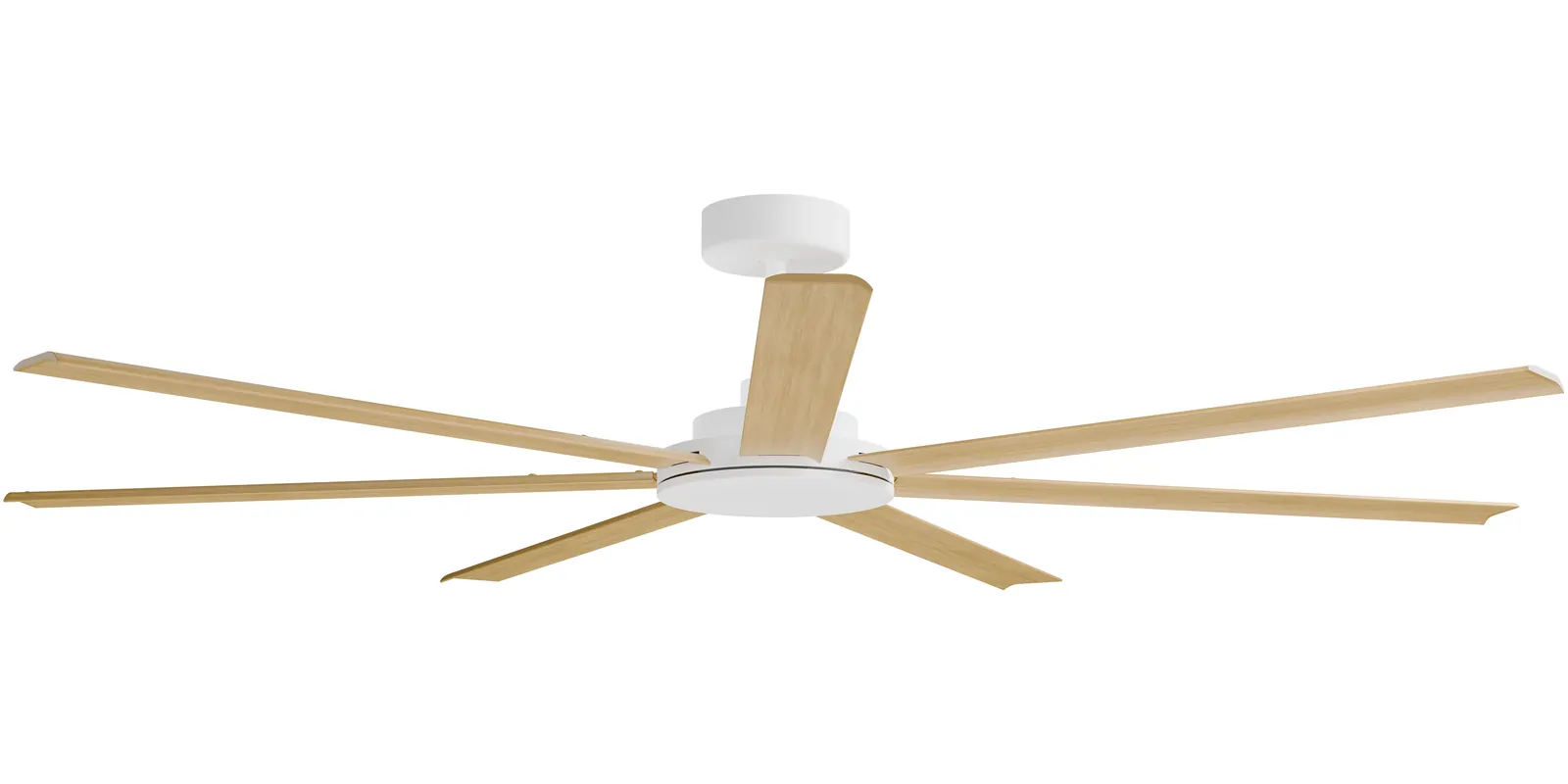 The Calibo Alula Smart DC 80 Inch White Ceiling Fan with Bamboo Blades ALU-780W-BA combines a crisp white motor housing with natural-look bamboo blades for a softer oversized statement. Designed for expansive living zones and covered outdoor areas, this smart DC ceiling fan offers exceptional airflow, quiet running performance and modern convenience through app control and an included 6-speed remote. Reverse, timer, sea breeze and security functions add practical year-round usability. Available through Alstra Lighting, this model is ideal for customers searching for an 80 inch white ceiling fan with timber-look blades, oversized smart fan or premium large ceiling fan for open spaces.