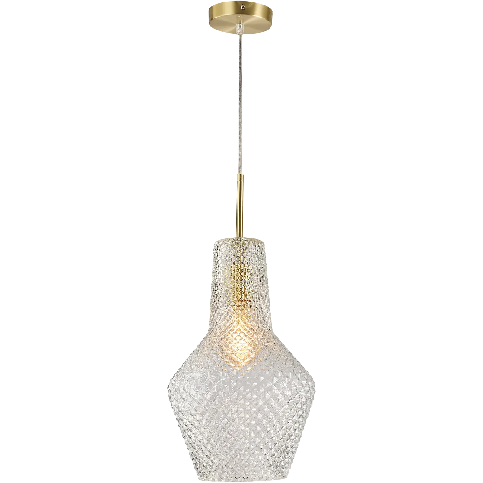 The Calibo Avian 1 Light Pendant Gold and Clear AVI-1PN-25-E27-CL-GD is a vintage-inspired glass pendant light designed to add timeless elegance and refined character to kitchens, dining areas and living spaces. Featuring beautifully crafted diamond cut clear glass with a warm gold metal finish, this decorative pendant creates a striking statement while allowing the globe to shine through the textured glass detailing. Suited to indoor installations, the Avian pendant offers a sophisticated blend of vintage charm and contemporary styling for Australian interiors. Available through Alstra Lighting, this Calibo pendant is ideal for customers searching for a clear glass pendant light, gold pendant light or vintage diamond cut glass pendant.