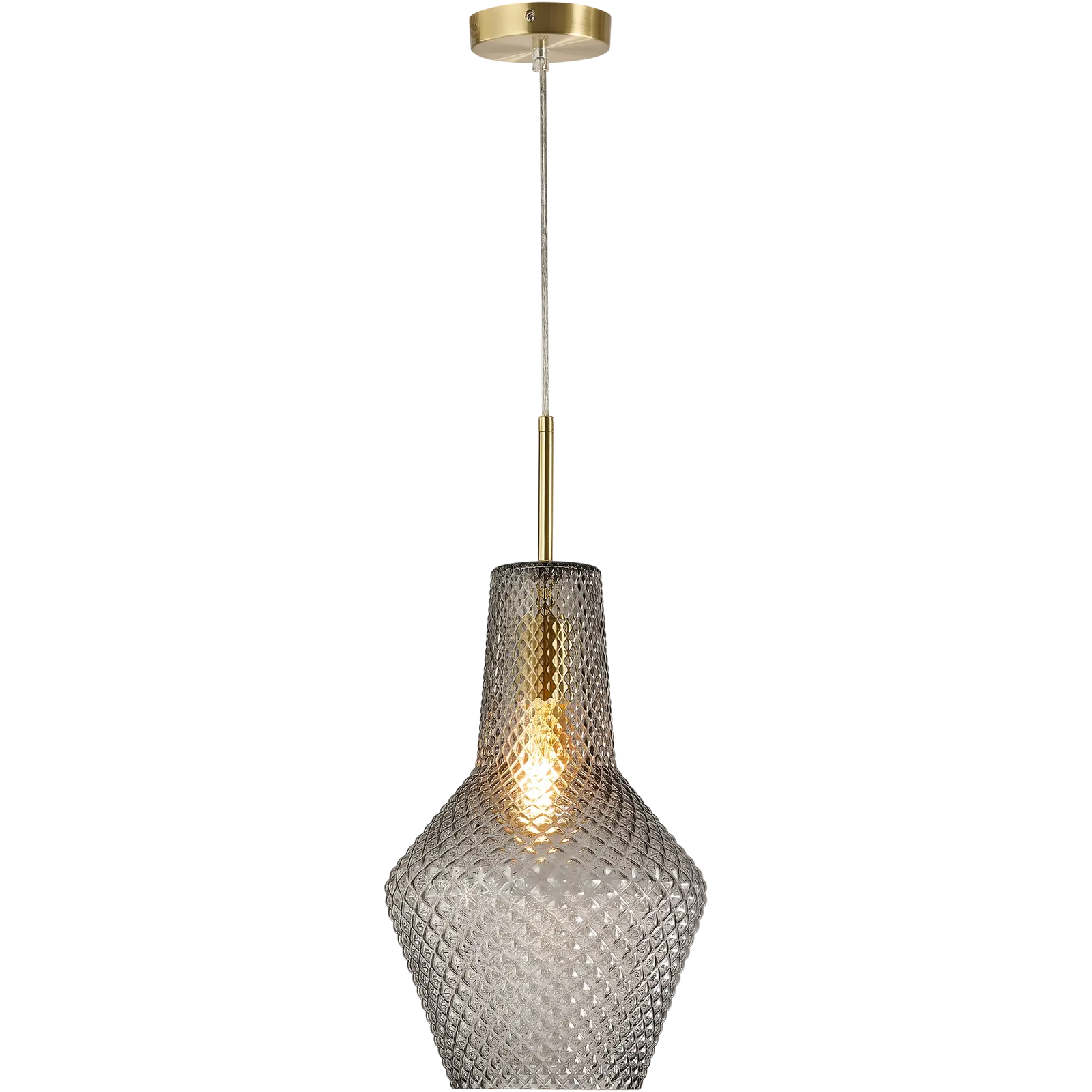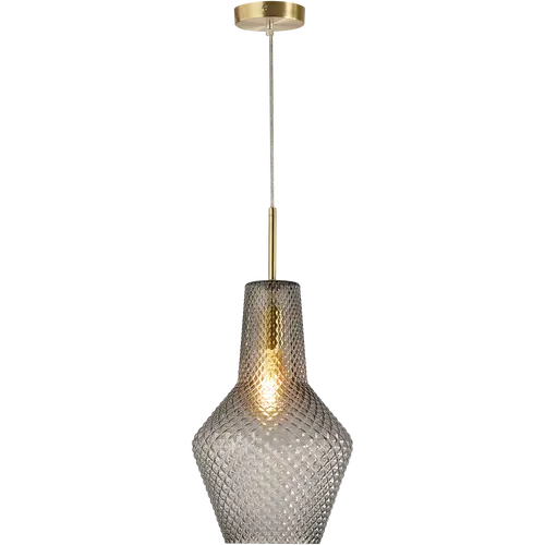 The Calibo Avian 1 Light Pendant Gold and Smoke AVI-1PN-25-E27-SM-GD is a stylish vintage-inspired pendant light designed to make a sophisticated statement in modern interiors. Featuring diamond cut smoke glass combined with a gold metal finish, this decorative pendant balances moody elegance with warm metallic detail for a premium look. Ideal for kitchens, dining areas and living spaces, the Avian pendant offers textured glass detailing that enhances both the fitting and the globe for a refined designer finish. Available through Alstra Lighting, this Calibo pendant is ideal for customers searching for a smoke glass pendant light, gold pendant light or vintage glass pendant for indoor spaces.