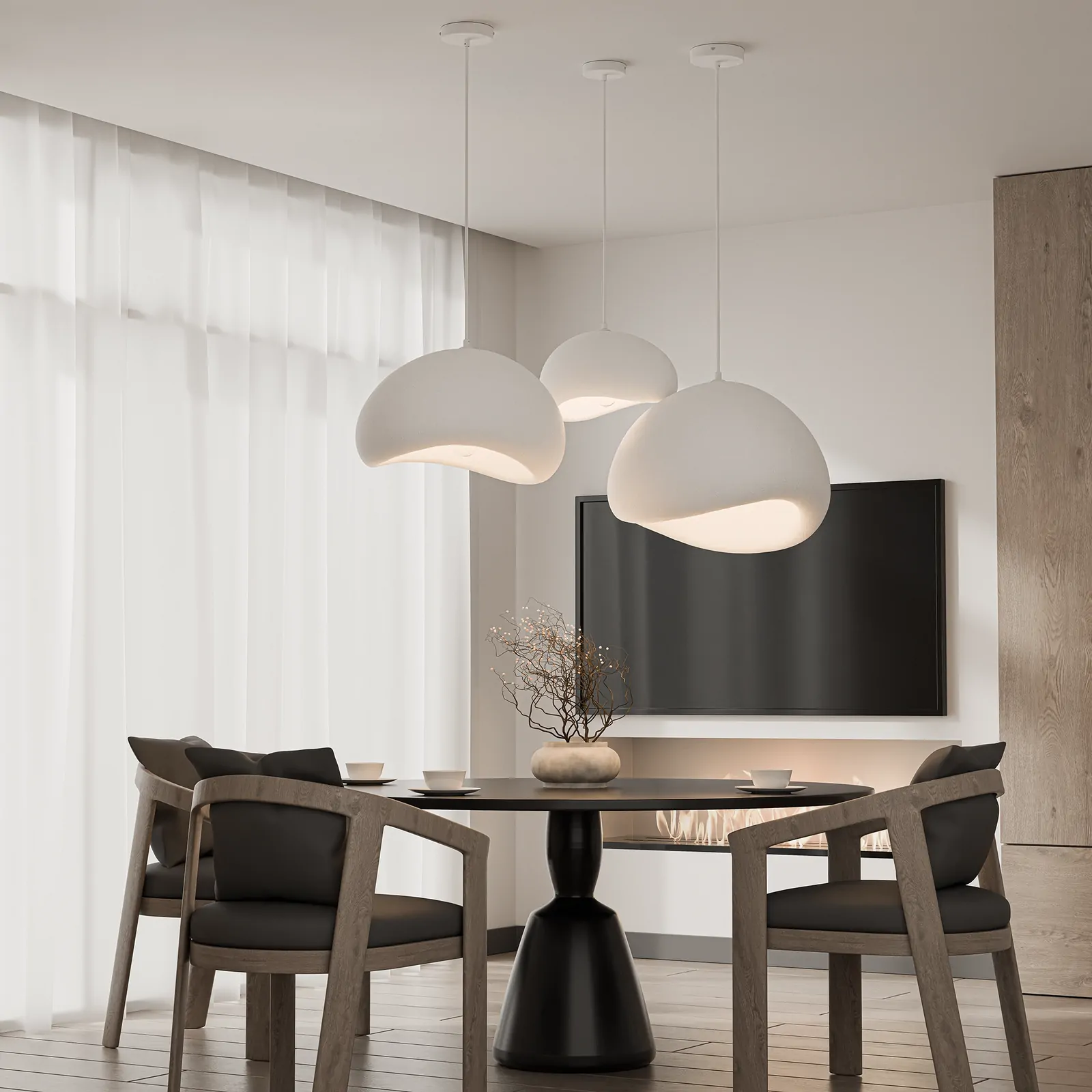 - Organic curved pendant shape