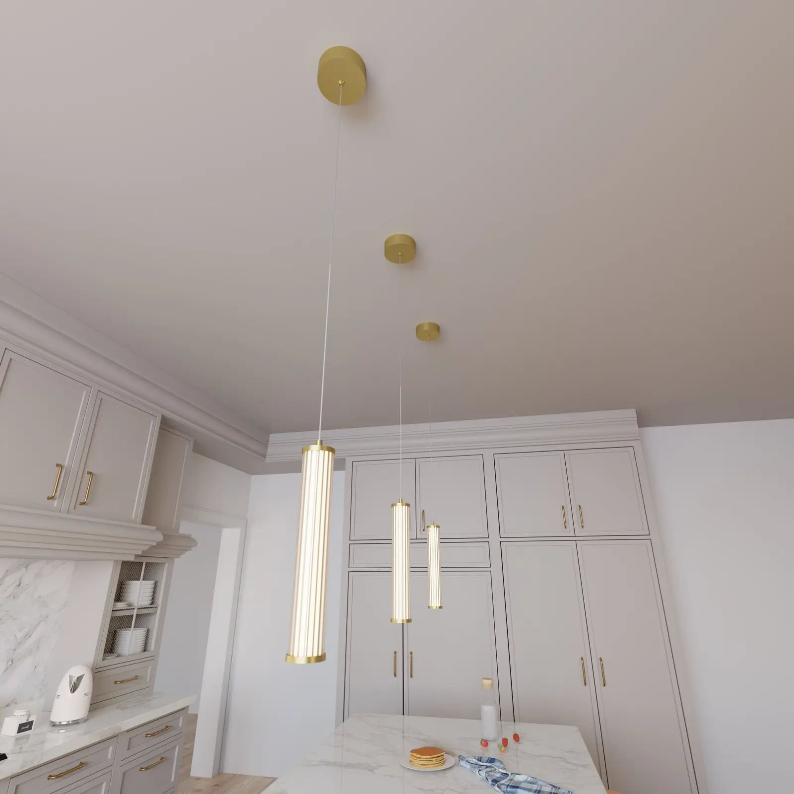 The Calibo Charm 1 Light LED Pendant Brass CHA-1PN-10W-BR is a modern decorative pendant light designed to bring warmth and elegance to interior spaces. Featuring a brass finish with refined ribbed detailing, this slim LED pendant is ideal for kitchen islands, bedside settings, dining zones and feature lighting applications. Its integrated LED light source and selectable colour temperatures make it a stylish and versatile option for modern Australian interiors. Available through Alstra Lighting, this Calibo pendant is ideal for customers searching for a brass LED pendant light, slim modern pendant or designer feature light.