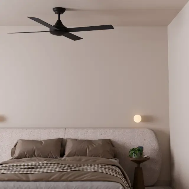 The Calibo Heron AC 48 Inch Black Ceiling Fan HER-448-BK is a sleek and practical ceiling fan designed for reliable airflow in indoor and covered outdoor spaces. Finished in black with durable rust-free ABS blades and a steel motor, this AC ceiling fan offers a modern architectural look suited to bedrooms, living rooms and alfresco areas. With simple 3-speed wall control operation, the Heron is built to deliver straightforward everyday performance and value. Available through Alstra Lighting, this Calibo ceiling fan is ideal for customers searching for a black 48 inch ceiling fan, AC ceiling fan or modern fan for covered outdoor use.
