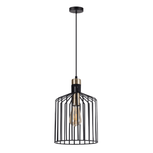 The Domus Ashley Pendant Light Medium combines modern industrial styling with a slim open wire frame that adds character and texture to contemporary interiors. Finished in plated matt black with antique brass highlights, this medium pendant light is ideal as a feature fitting in living rooms, bedrooms, kitchen spaces and other modern interior settings. The open cage style allows the lamp to become part of the design, making it well suited to decorative E27 globes for added visual impact. Available through Alstra Lighting, the Domus Ashley medium pendant is a strong option for customers searching for a black metal pendant light, wire cage pendant light or medium industrial pendant light.