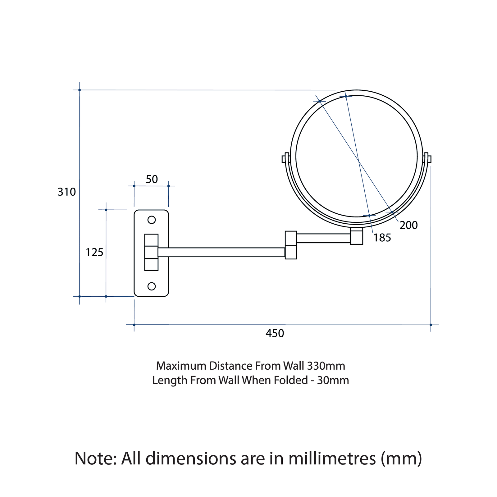 The R18SM magnifying mirror adds style and a sense of beauty to your room. This mirror features a double sided mirror with 8x magnification and normal mirror (no magnification) which can be  flipped 360°. This mirror can be folded back out of the way against the wall when not in use or pulled forward with good vertical adjustment to make it easy to use.
