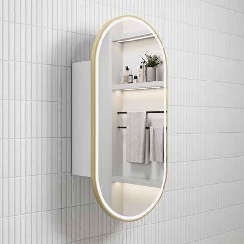 Aulic Beau Monde LED Shaving Cabinet White Gold Oval 450mm