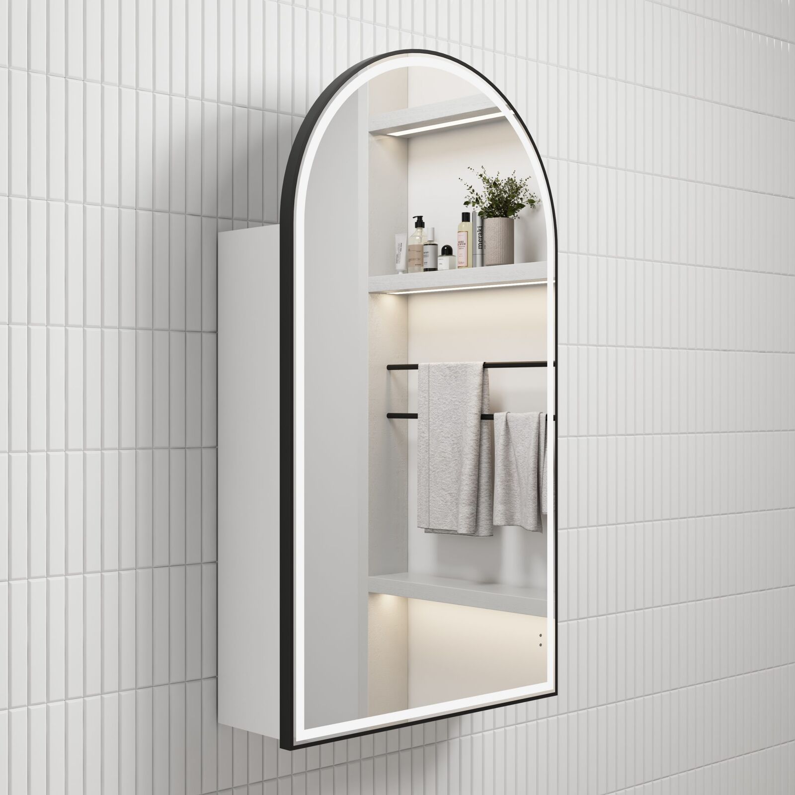 • Modern arched LED shaving cabinet