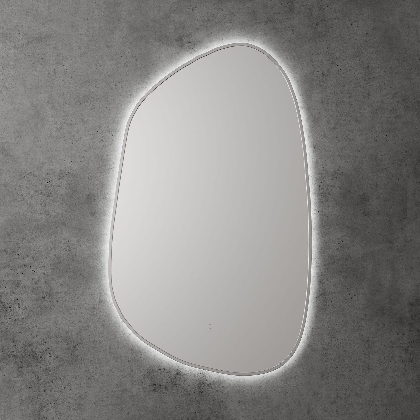 The Aulic Tarcoola LED Mirror in brushed nickel offers a refined contemporary lighting solution for bathroom and ensuite spaces. Featuring a softly contoured organic shape with integrated backlighting, the mirror provides practical illumination while enhancing interior design aesthetics.