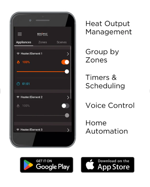 Enjoy custom comfort with the Affinity Dimmer Series. Suitable for Bromic Platinum and Tungsten Collection electric heaters, the Affinity Dimmer Series comes in 1 and 2 channel input options – with each channel controlling up to 6000W of power. Using the Bromic Heating app, instantly and precisely adjust heat output down to 1% increments and other unique scenes and settings for ideal outdoor experiences. Using the enabled Wi-Fi (compatible with 2.4GHz) or Bluetooth connectivity, control and customize your comfort via the Bromic Heating App.