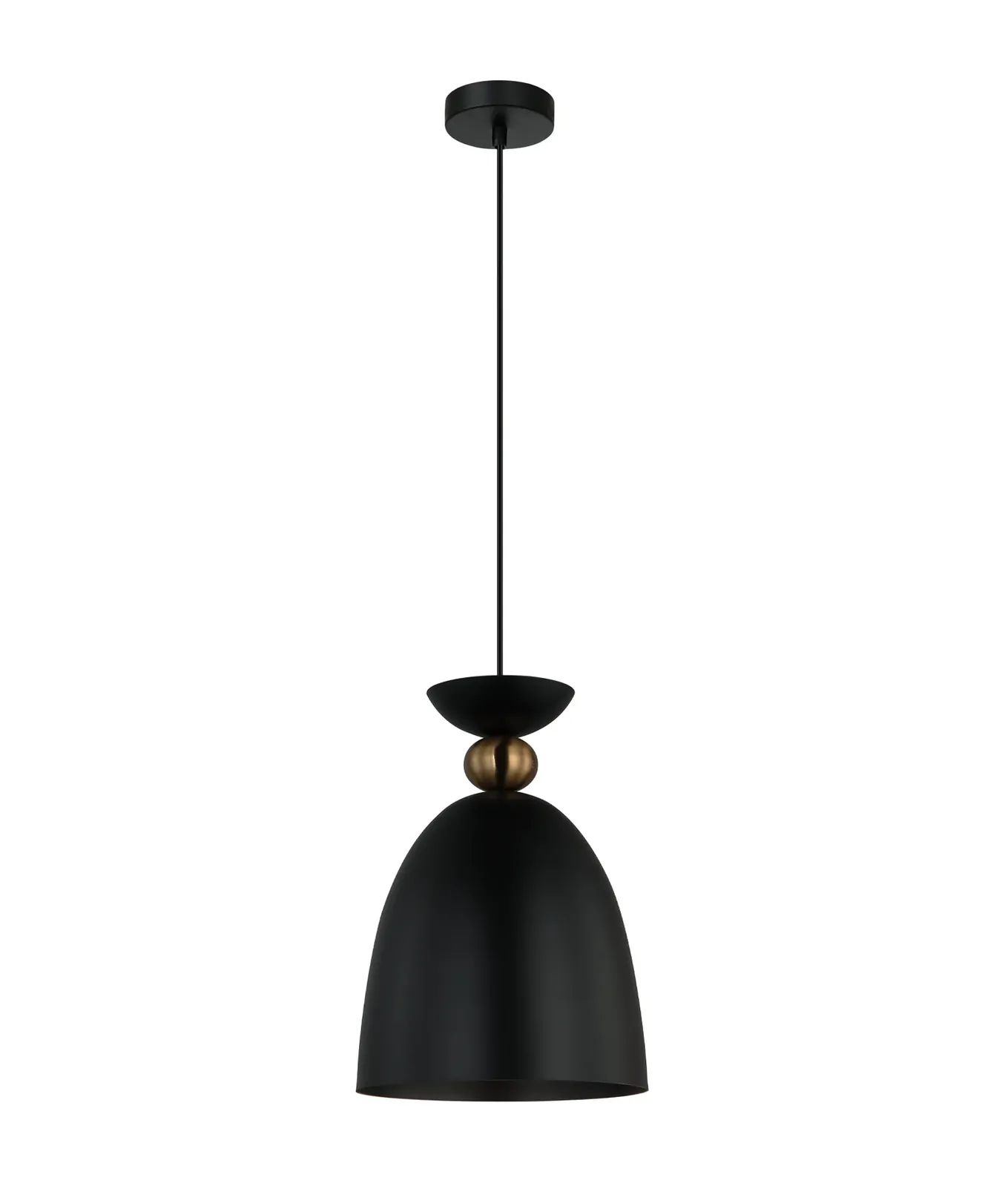 • Bell-shaped pendant design with a matt black finish