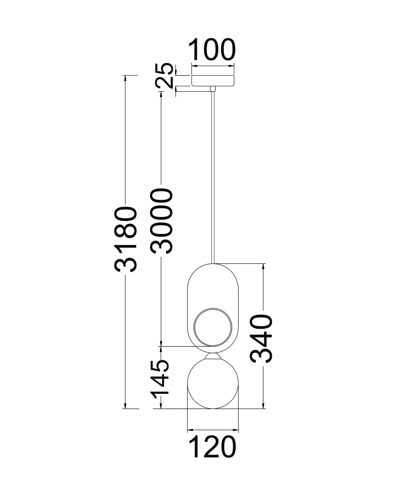 - Suspension: 3000mm black cable