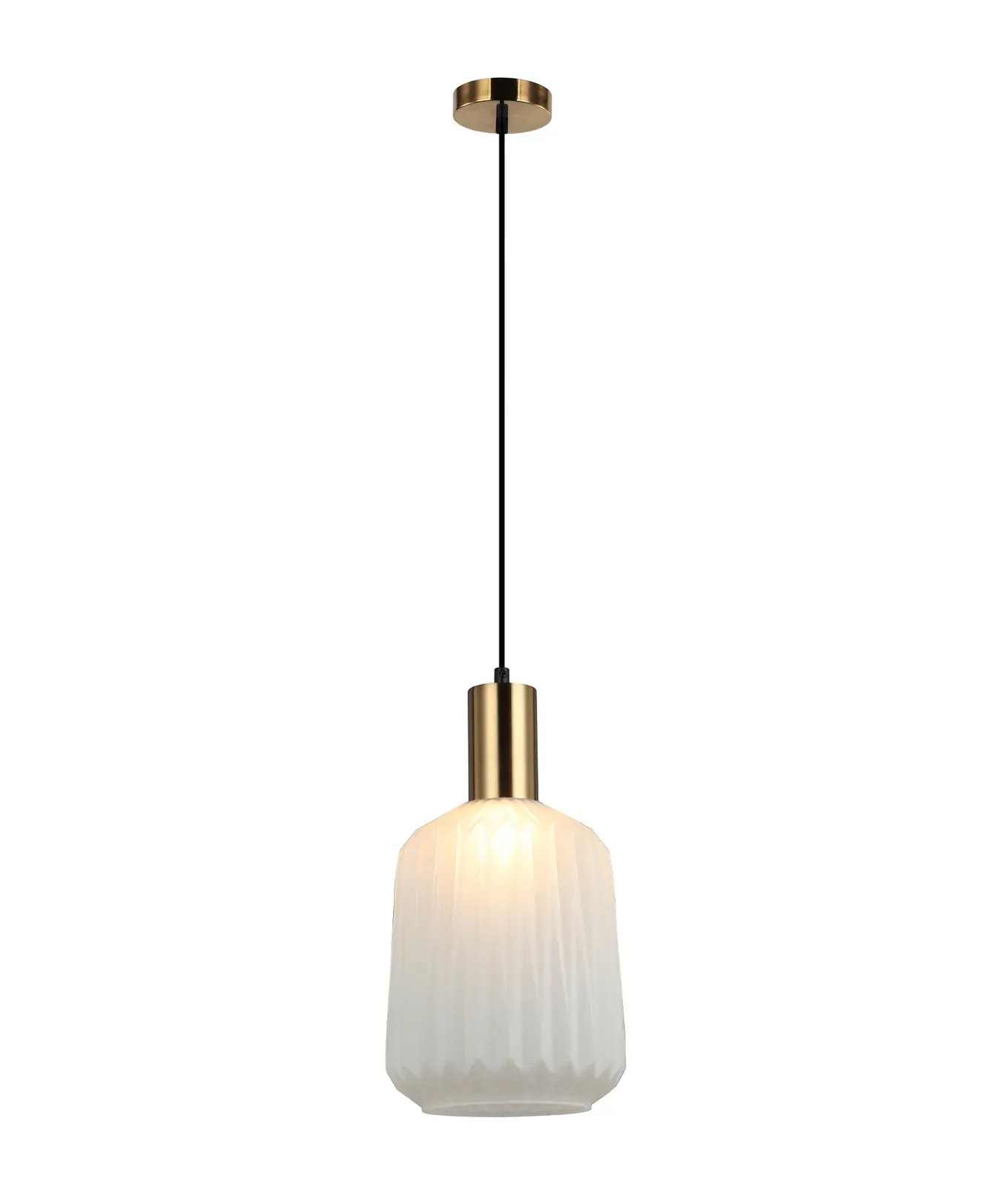 This interior pendant light showcases a pleated opal glass dome that blends soft visual texture with smooth, diffused illumination. Designed to enhance modern living spaces without overwhelming them, it is ideal for kitchens, dining areas, bedrooms and living rooms where ambient lighting is essential.