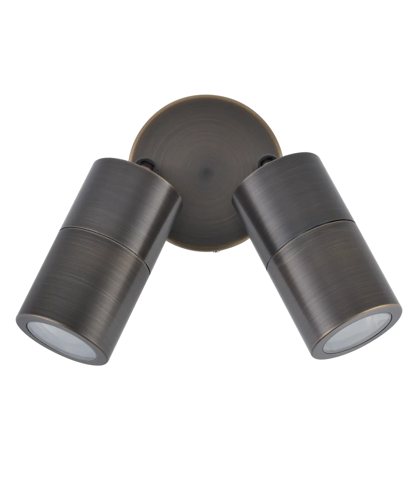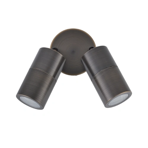 The CLA solid brass double adjustable wall pillar light in rustic brass is a premium exterior lighting solution designed for maximum flexibility and visual impact. Featuring two adjustable GU10 heads, it allows independent control of light direction, making it ideal for feature walls, pillars and architectural highlights.