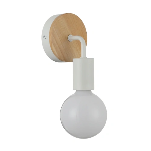 CLA Solo Iron Bracket Round Wood Wall Light White