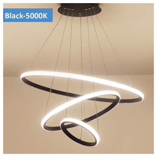 The Crown 3 Ring in black is an eye-catching pendant light that combines modern design with striking visual appeal. With its three interconnected rings and sleek black finish, this light fixture brings a touch of sophistication to any space. The bright 5000K cool white light offers crisp, clear illumination, making it ideal for kitchens, dining areas, living rooms, or commercial settings.