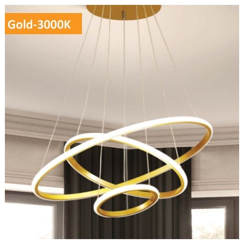 The Crown 3 Ring in gold is a stunning pendant light that adds a touch of luxury and elegance to any space. Featuring three interlinked rings with a polished gold finish, this fixture creates a bold visual statement while providing a warm 3000K light that sets a cozy and inviting atmosphere. Ideal for living rooms, dining areas, offices, or hospitality settings, it brings sophistication to any interior.