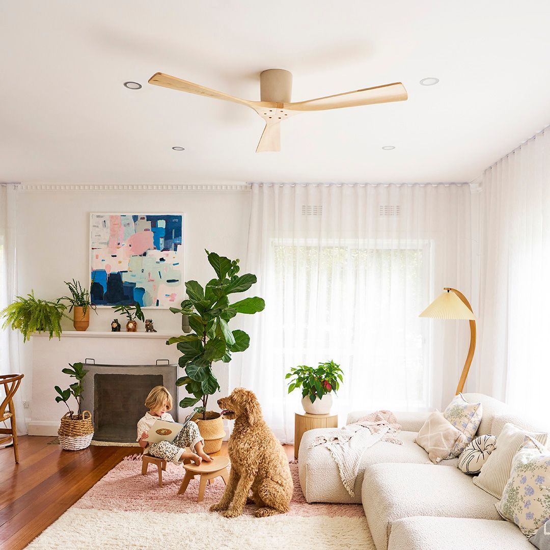 The Gaia ceiling fan from Fanco’s EarthFirst collection is a masterclass in eco-conscious design and natural elegance. With its sustainably sourced timber blades and bio-based plastic motor housing, the Gaia fan embodies a commitment to sustainability. Its natural finish, earthy tones, and unique ‘Ecru’ motor create a serene, nature-inspired ambiance that seamlessly integrates with any interior.