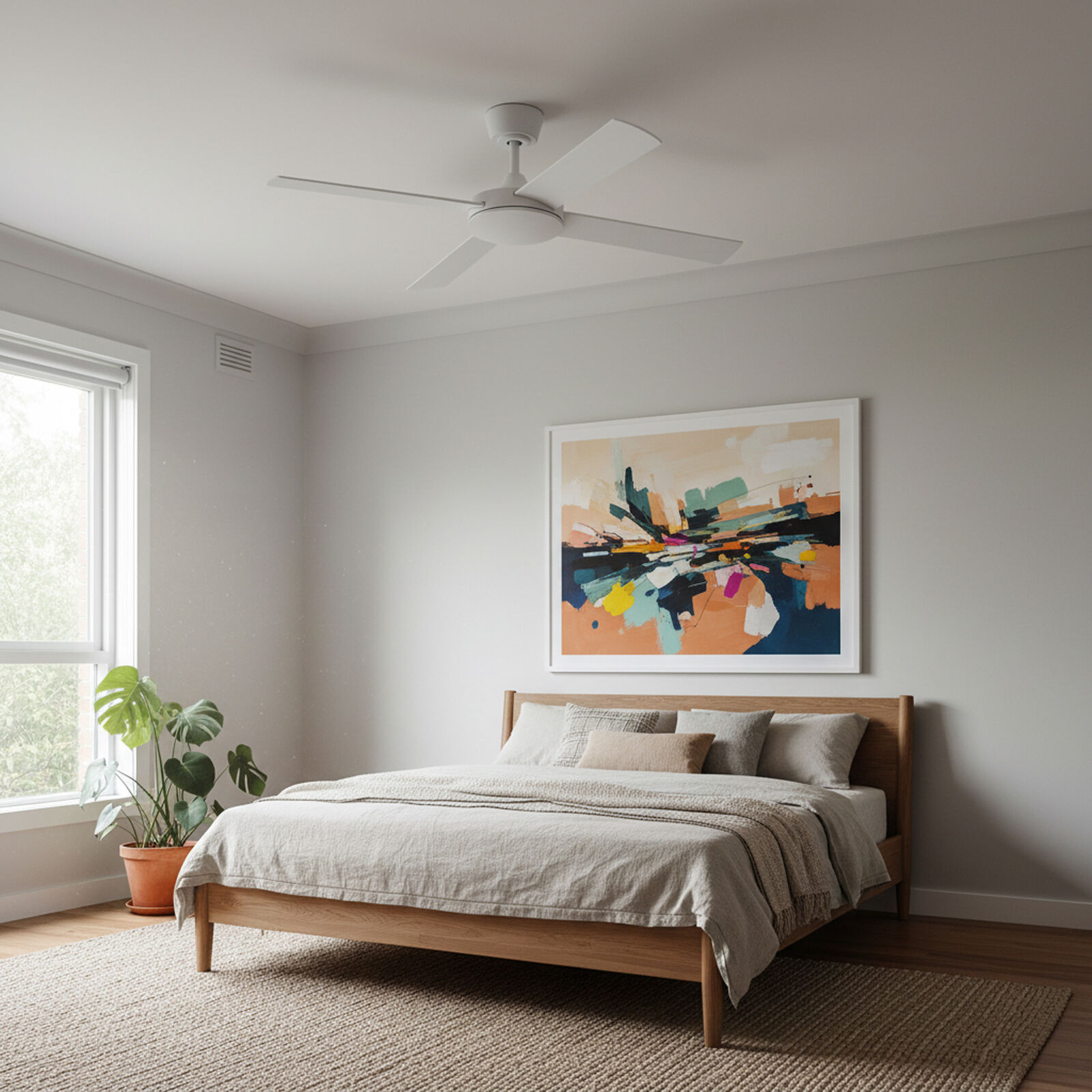 The 52″ Fanco Eco Silent Pro DC ceiling fan in white is ideal for larger bedrooms, living rooms and open-plan spaces requiring quiet, efficient airflow. Its high-performance DC motor ensures whisper-quiet operation while using significantly less energy than traditional AC fans.