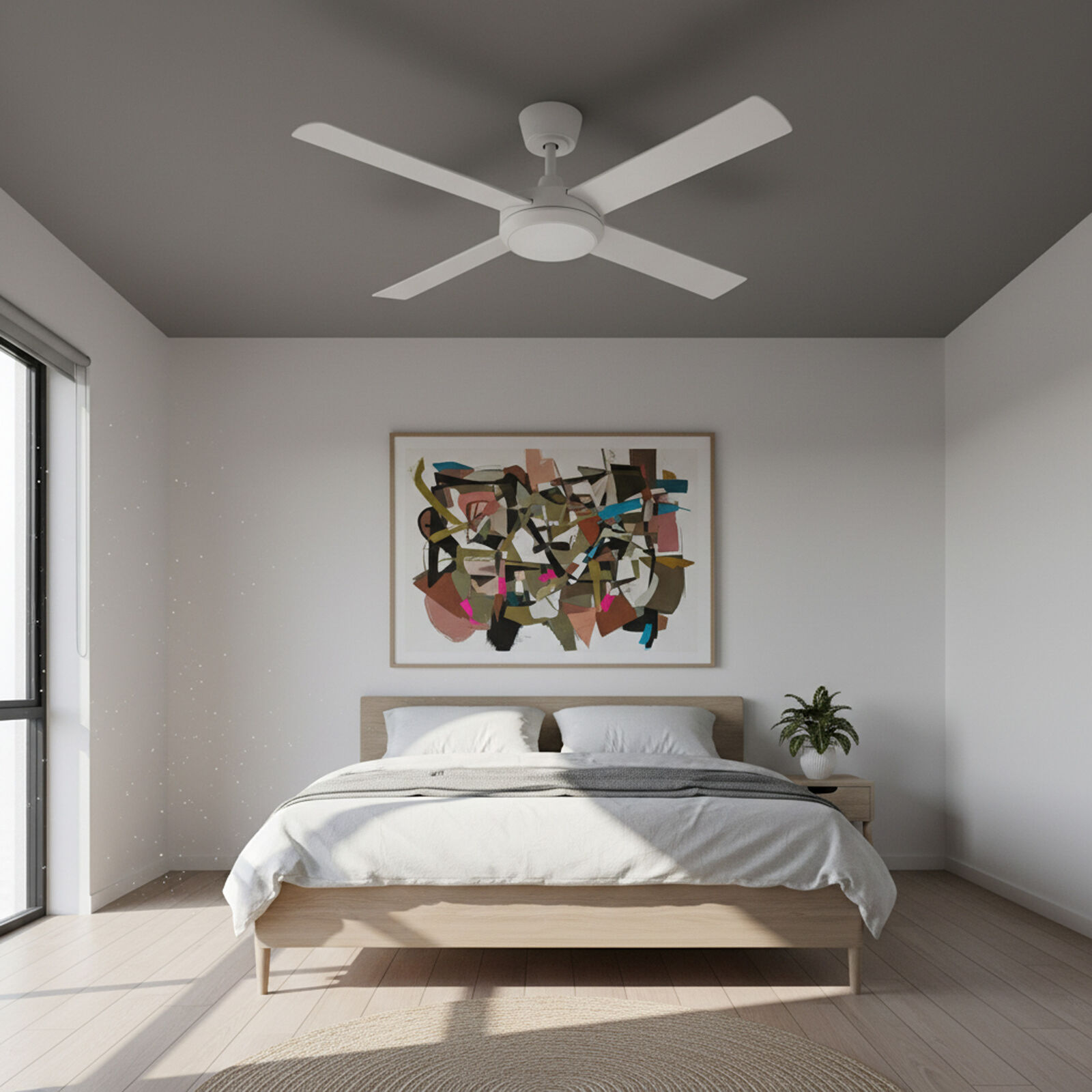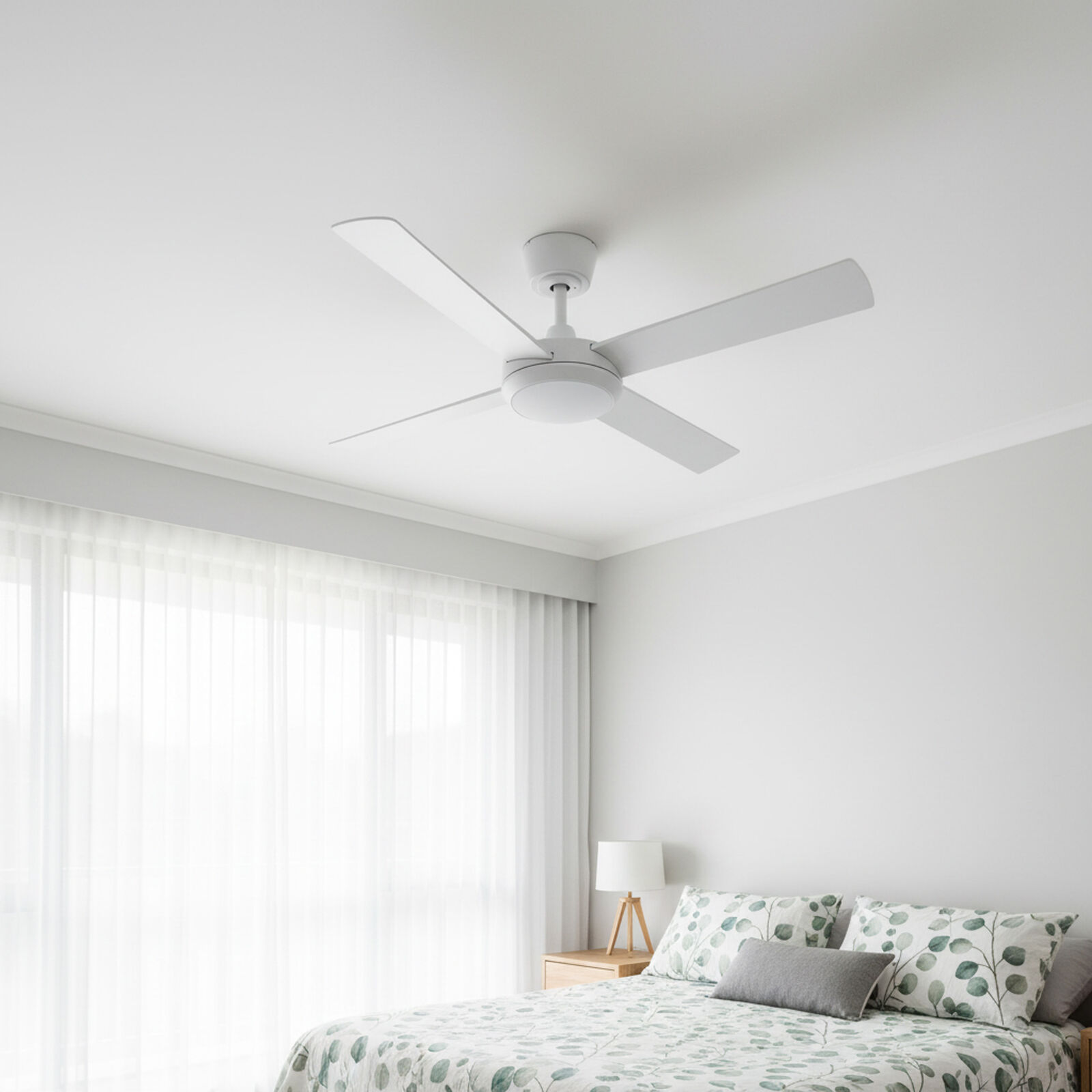 Its advanced DC motor provides efficient airflow with ultra-low noise, while ABS blades ensure durability in indoor and outdoor undercover installations. Supplied with a remote control, timer and summer/winter reverse function, this white ceiling fan offers practical comfort all year round.