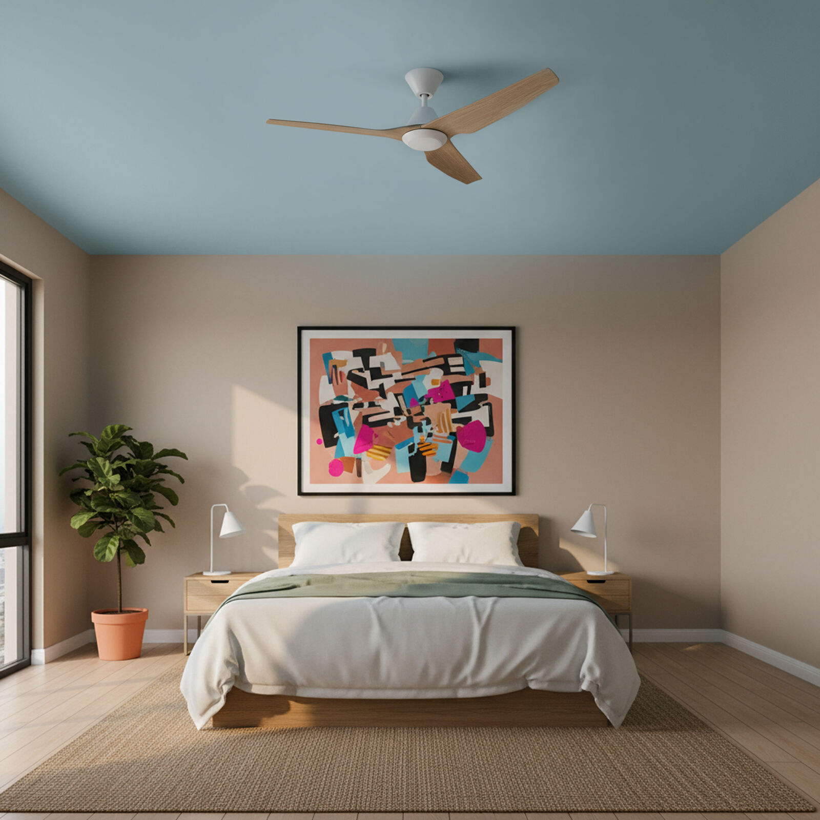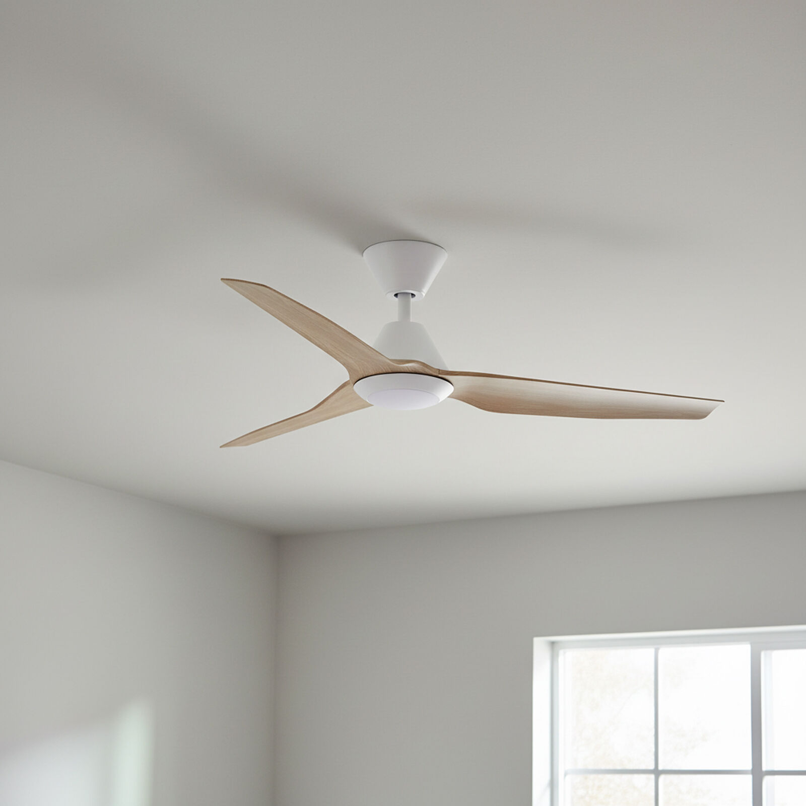 Designed for spaces that need both airflow and lighting flexibility, this 48″ Infinity-iD fan features a dimmable CCT LED light and ultra-quiet DC motor. The white and beechwood finish suits modern Australian homes, with remote control, timer and reversible function for year-round comfort.