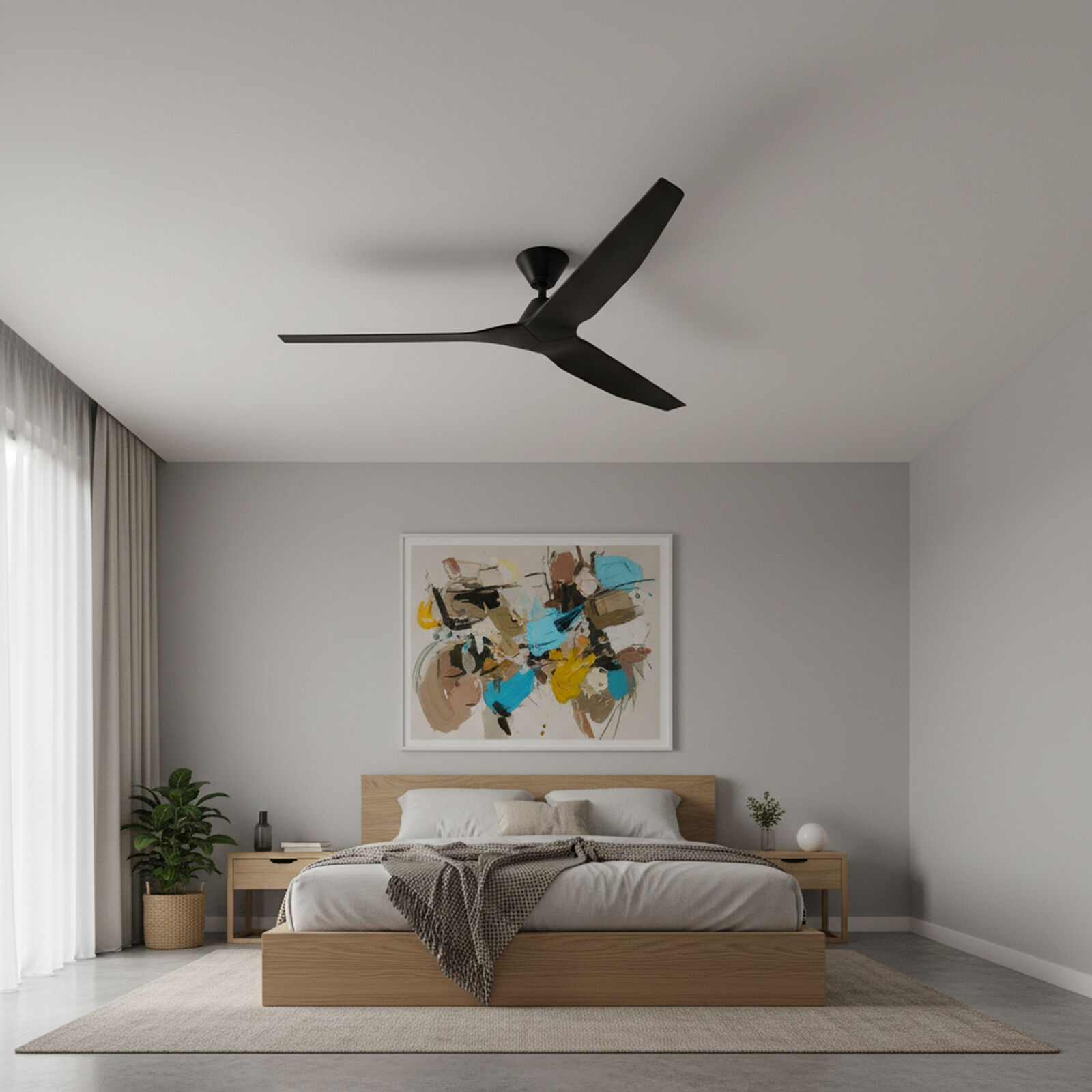 The Fanco Infinity-iD V3 DC 60" Black Ceiling Fan with Remote is a bold large-format ceiling fan designed for spacious interiors and covered outdoor living areas. Its striking black finish and modern three-blade design create a strong architectural look, while the efficient DC motor provides quiet and economical airflow for everyday comfort. The included remote control, reversible function and SMART adaptability make it a flexible option for year-round use. Sold through Alstra Lighting, this fan is ideal for customers searching for a 60 inch black ceiling fan, large DC ceiling fan without light or modern outdoor ceiling fan.