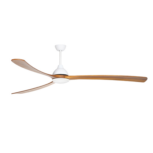 The Sanctuary DC Ceiling fan comprises of 3 timber blades spanning 86 inches and finished in a beautiful white. The design is stunning and a perfect fit for wide-open indoor and outdoor covered areas (as well as coastal locations). This model comes with a 6-speed remote which also includes reverse and timer functionality. This model comes with a 24w CCT LED Light which is switchable between Warm White 3000K, Natural White 4000K and Daylight 6000K colour temperatures. This light has 8 step dimming and dimming level memory so that when the fan is turned off and on – the same light settings will be retained.