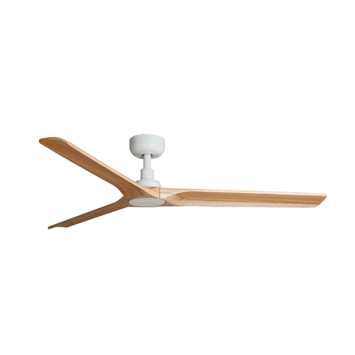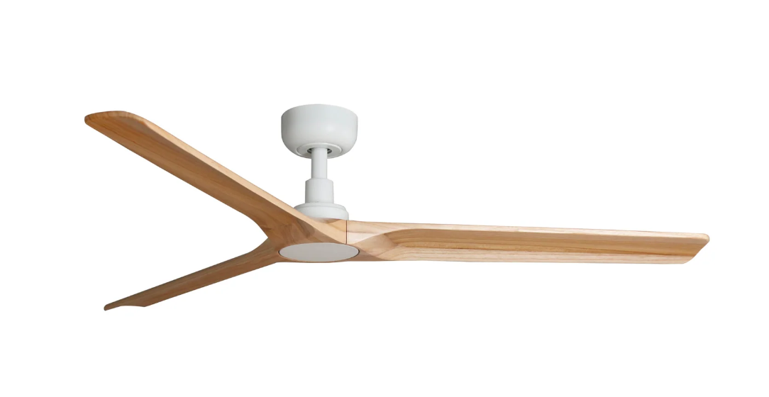 The Heywood 132cm DC ceiling fan in white with pine timber blades is a premium designer ceiling fan for Australian homes that want quiet airflow, natural materials and a refined architectural finish. With its sculpted matt white motor housing, three elegantly curved FSC-certified pine timber blades and clean modern styling, this ceiling fan is ideal for bedrooms, living areas, studies and other medium rooms where both performance and aesthetics matter. Faro describes the Heywood as delivering strong airflow, silent performance and refined design, making it a strong option for customers searching for a modern white ceiling fan with timber blades. This no app control model includes a remote control with timer and uses an efficient DC motor with six speed settings and reverse mode for year-round comfort. It is suitable for flat or angled ceilings up to 12 degrees and is compatible with optional 26mm downrods for higher ceilings.