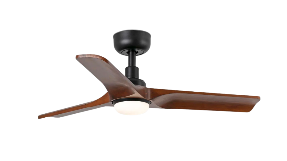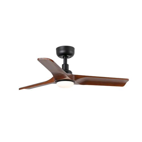 The Faro Heywood 90cm Black Ceiling Fan with Dark Walnut Timber Blades and LED Light is a compact designer ceiling fan that combines elegant timber styling with quiet DC motor performance. Finished in matt black with FSC certified pine wood blades in a dark walnut finish, this modern ceiling fan is ideal for smaller indoor spaces where refined design and practical lighting matter. It features an integrated dimmable SMD LED light with selectable 2700K, 4000K and 6000K colour temperatures, plus a quiet DC motor with six speeds, reverse mode and timer settings for flexible year-round comfort. Available through Alstra Lighting, this Faro ceiling fan is ideal for customers searching for a black ceiling fan with walnut blades, small designer ceiling fan with LED light or compact DC ceiling fan for sloped ceilings.