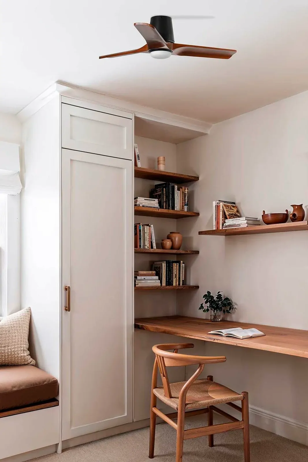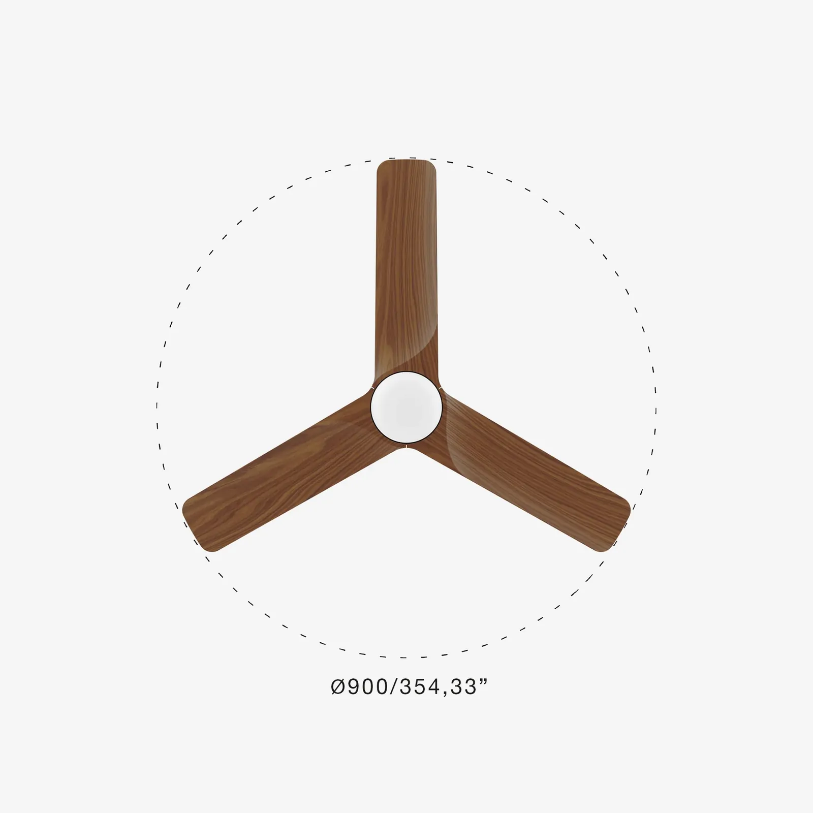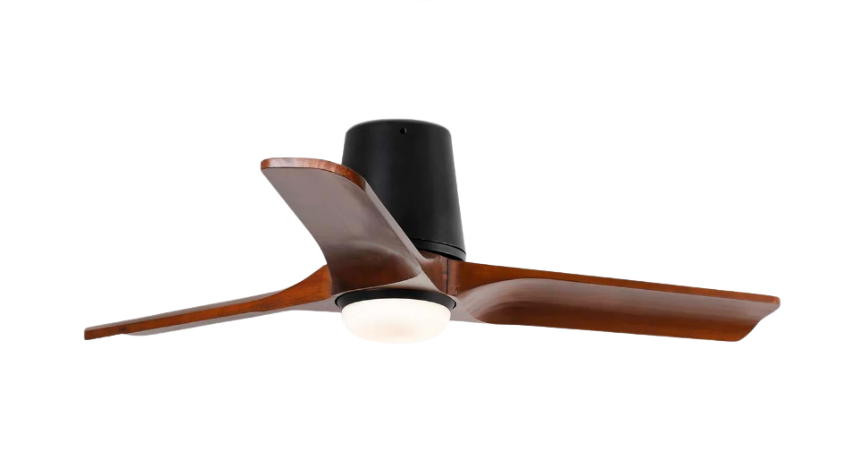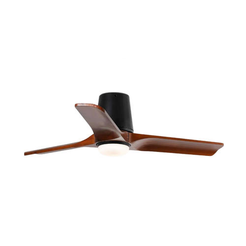 The Faro Heywood Tub 90cm Black Ceiling Fan with Dark Walnut Timber Blades and LED Light is a compact low profile ceiling fan designed for smaller rooms and lower ceilings where elegant styling and quiet performance matter. Finished in matt black with FSC certified dark walnut pine timber blades, this hugger-style ceiling fan brings a clean modern look with a warm timber touch to bedrooms, studies, apartments and other compact indoor spaces. It features an integrated dimmable SMD LED light with selectable 2700K, 4000K and 6000K colour temperatures, plus a quiet DC motor with six speeds, reverse function and timer settings for year-round comfort. Available through Alstra Lighting, this Faro ceiling fan is ideal for customers searching for a black ceiling fan with walnut blades, low profile ceiling fan with light or compact DC hugger fan for small rooms.