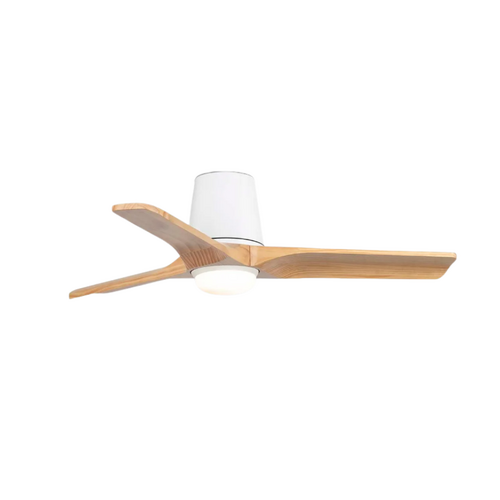 The Faro Heywood Tub 90cm White Ceiling Fan with Pine Timber Blades and LED Light is a compact low profile ceiling fan designed for smaller rooms and lower ceilings where elegant styling and quiet performance matter. Finished in matt white with FSC certified pine timber blades, this hugger-style ceiling fan brings a clean modern look with a natural timber touch to bedrooms, studies, apartments and other compact indoor spaces. It features an integrated dimmable SMD LED light with selectable 2700K, 4000K and 6000K colour temperatures, plus a quiet DC motor with six speeds, reverse function and timer settings for year-round comfort. Available through Alstra Lighting, this Faro ceiling fan is ideal for customers searching for a white ceiling fan with timber blades, low profile ceiling fan with light or compact DC hugger fan for small rooms.