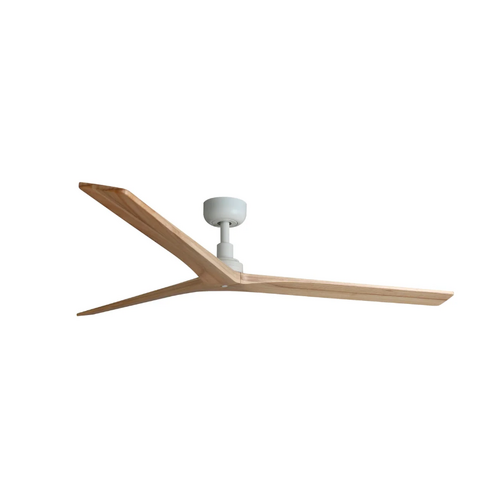 The Klim 150cm DC ceiling fan in white with pine timber blades is a premium designer ceiling fan for Australian homes that want quiet airflow, natural materials and a refined architectural finish. With its slim matt white motor, three FSC-certified pine timber blades and clean minimalist styling, this model is ideal for larger bedrooms, living areas and open-plan spaces where both performance and aesthetics matter. Faro describes the Klim as pairing sharp, clean lines with a striking architectural design, while the 150cm size is recommended for large spaces of 17–28 m². This no app control model includes a remote control with timer and uses an efficient DC motor with six speed settings and reverse mode for year-round comfort. The product page also states it is suitable for flat or angled ceilings up to 12 degrees and is compatible with optional 26mm downrods for higher ceilings.
