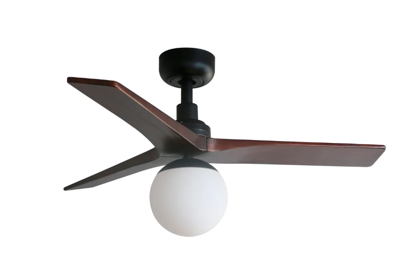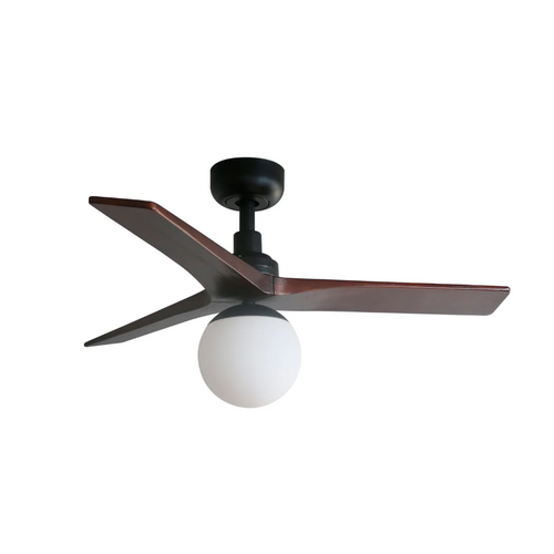 Faro Klim 92.5cm Black Ceiling Fan with Dark Walnut Timber Blades and Light