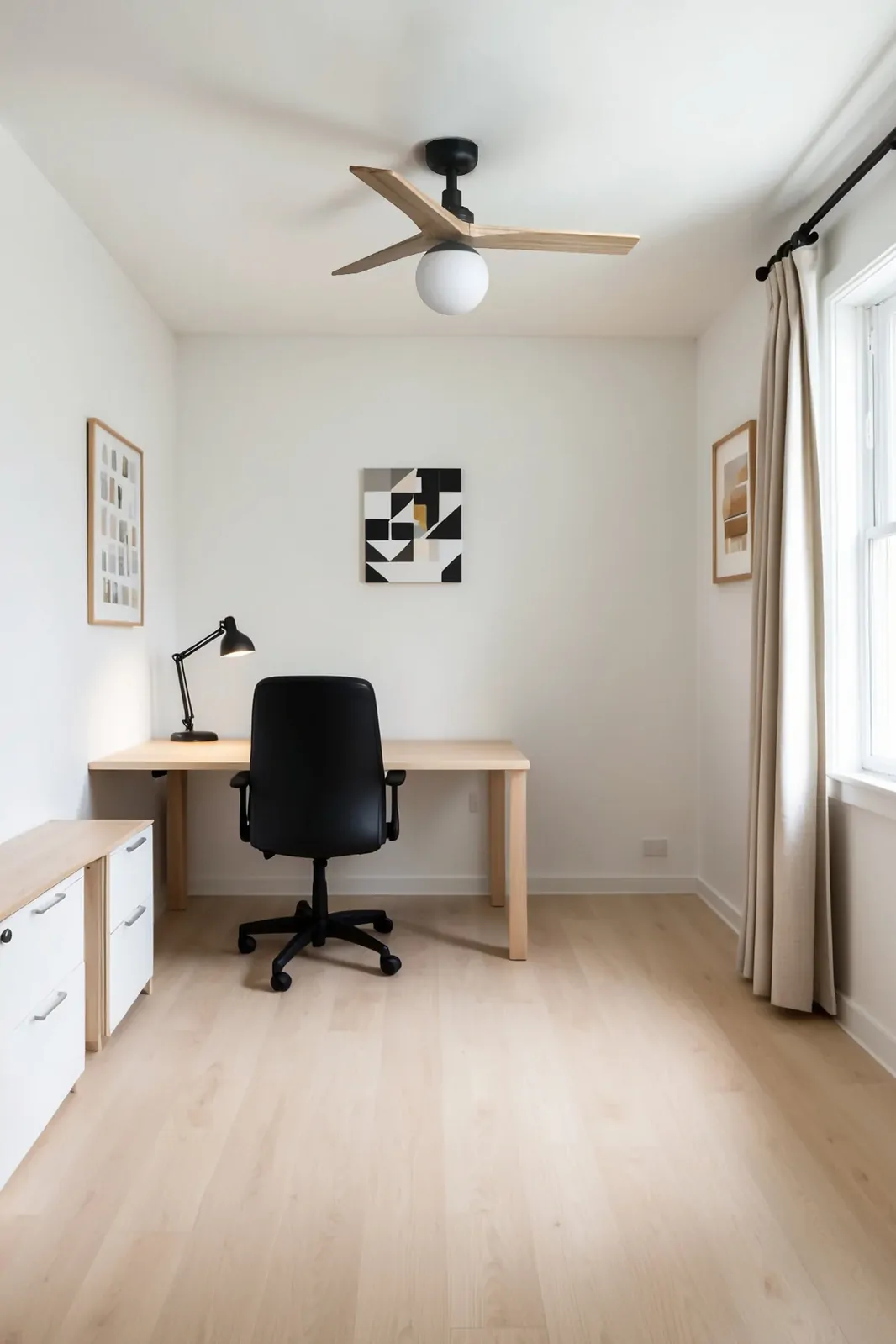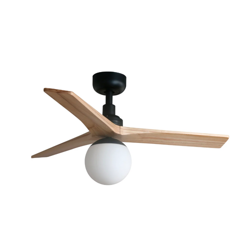 The Faro Klim 92.5cm Black Ceiling Fan with Pine Timber Blades and Light is a compact designer ceiling fan that combines sharp architectural styling with quiet DC motor performance. Finished in matt black with natural pine timber blades, this modern ceiling fan is ideal for smaller bedrooms, studies, apartments and other indoor spaces where refined finishes and practical lighting matter. It features an E27 LED-compatible light fitting with an opal glass diffuser, six speed remote control, reverse function and timer settings for flexible year-round comfort. Available through Alstra Lighting, this Faro ceiling fan is ideal for customers searching for a black ceiling fan with timber blades, small designer ceiling fan with light or compact DC ceiling fan for modern interiors.