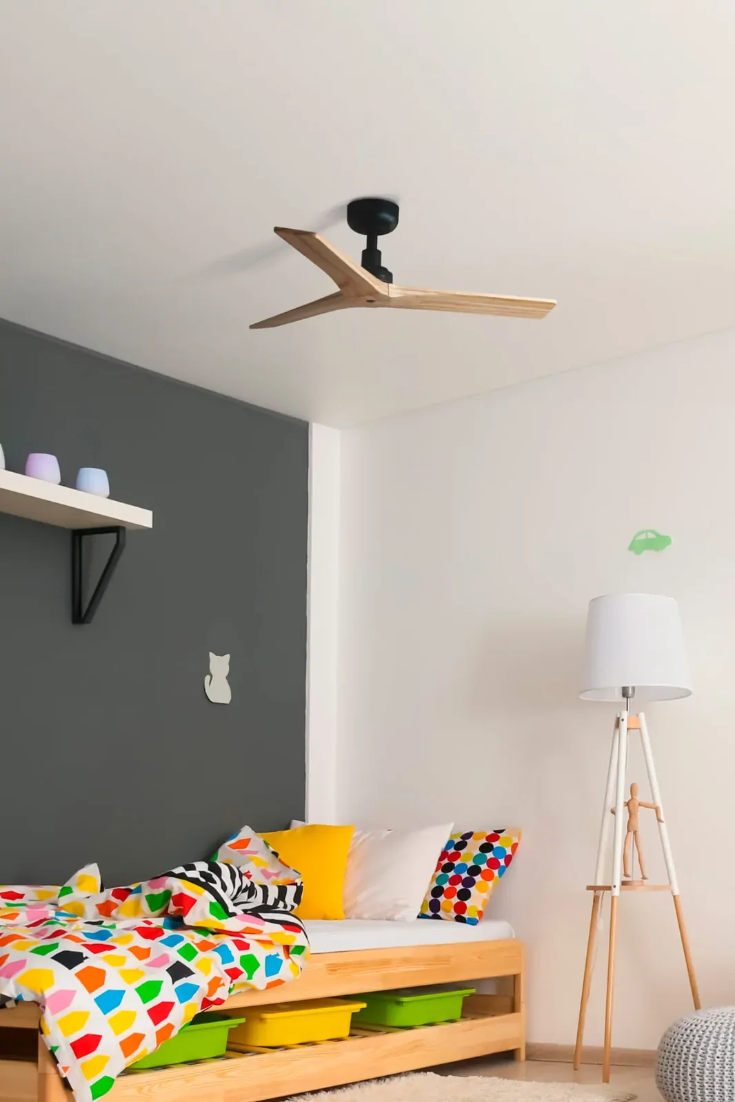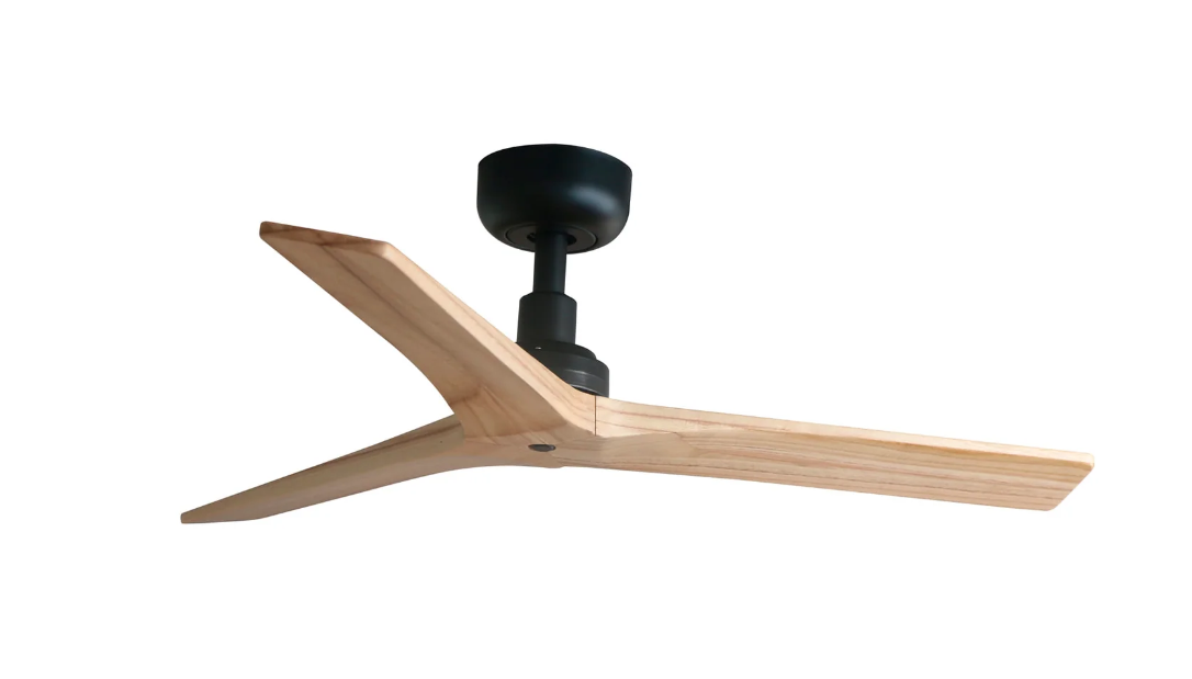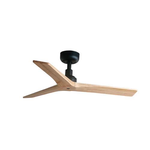 The Klim 92.5cm DC ceiling fan in black with pine timber blades is a premium designer ceiling fan for Australian homes that want quiet airflow, natural materials and a bold architectural finish in a compact size. With its slim matt black motor, three FSC-certified pine timber blades and clean architectural styling, this model is ideal for bedrooms, studies and other small spaces under 13m² where both performance and aesthetics matter. Faro describes the Klim as pairing sharp, clean lines with a striking architectural design, while the compact 92.5cm size is specifically suited to smaller rooms. This no app control model includes a remote control with timer and uses an efficient DC motor with six speed settings and reverse mode for year-round comfort. The product page also states it is suitable for flat or angled ceilings up to 12 degrees and is compatible with optional 26mm downrods for higher ceilings.