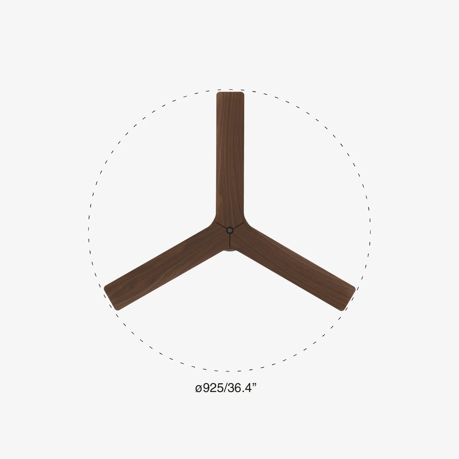 The Klim 92.5cm DC ceiling fan in black with walnut timber blades is a premium designer ceiling fan for Australian homes that want quiet airflow, refined natural materials and a bold architectural finish in a compact size. With its slim matt black motor, three FSC certified pine timber blades in a dark walnut finish and clean European styling, this model is ideal for bedrooms, studies, small living areas and other rooms under 13m² where both performance and aesthetics matter. Faro describes the Klim as pairing sharp, clean lines with whisper-quiet DC motor performance and an optional light kit for added flexibility. This no app control model includes a remote control with timer and uses an efficient DC motor with six speed settings and reverse mode for year-round comfort. It is suitable for flat or angled ceilings up to 12 degrees and is compatible with optional 26mm downrods for higher ceilings.