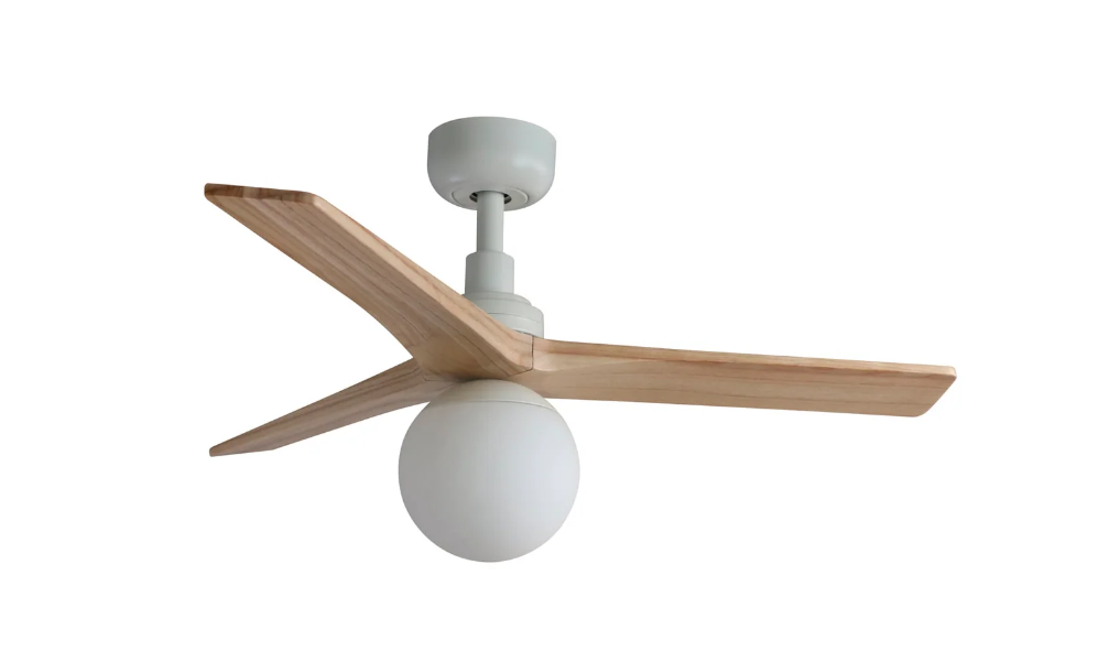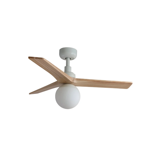 Faro Klim 92.5cm White Ceiling Fan with Pine Timber Blades and Light