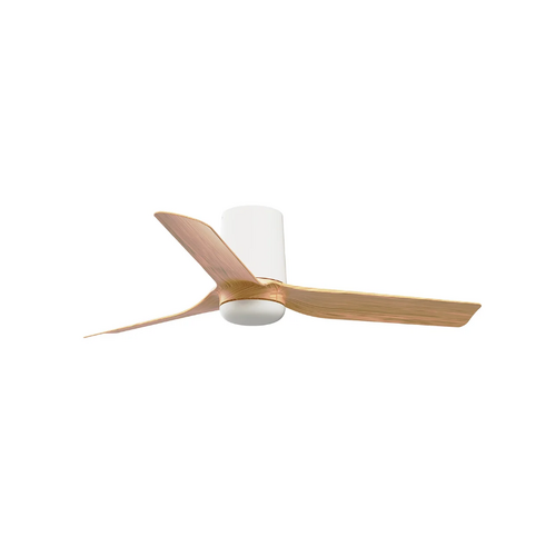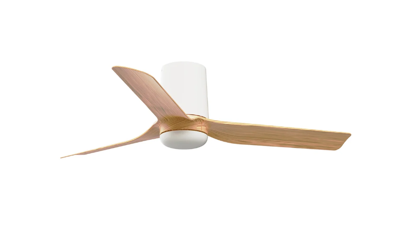 The Mini Punt Tub 90cm DC ceiling fan in white with maple ABS blades is a premium low profile ceiling fan designed for Australian homes that want quiet airflow, modern styling and compact performance in smaller spaces. With its flush-mount tub design, matt white finish and maple-look ABS blades, this ceiling fan is ideal for bedrooms, studies, apartments and other rooms under 13m² where low ceiling clearance and a softer timber-look finish both matter. Faro describes the Mini Punt Tub as classic, simple and compact, built to deliver smooth airflow with a quiet DC motor in a smaller footprint. This no app control model includes a remote control with timer and uses an efficient DC motor with six speed settings and reverse mode for year-round comfort. The fan sits 20.3cm from the ceiling, making it suitable for flat ceilings as low as 2.4m, while the product page also notes that an optional dimmable LED light kit is available separately.