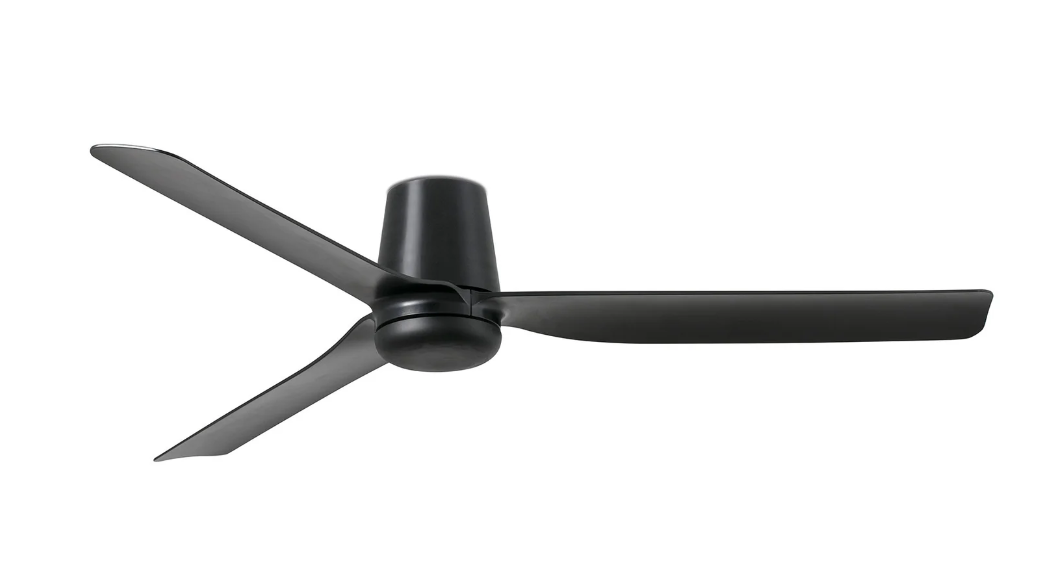 The Punt Tub 130cm DC ceiling fan in black with ABS blades is a premium low profile ceiling fan designed for Australian homes that want quiet airflow, clean modern styling and reliable performance in spaces with reduced ceiling clearance. With its flush-mount tub design, matt black finish and simple ABS blades, this ceiling fan is ideal for bedrooms, living areas, studies and other medium rooms where a minimal look and practical comfort both matter. Faro describes the Punt Tub as clean and low profile, designed for compact spaces with a low-profile motor and simple ABS blades. This no app control model includes a remote control with timer and uses an efficient DC motor with six speed settings and reverse mode for year-round comfort. The product page says this version is the fan-only model, with an optional dimmable LED light kit sold separately, and its flush-mount design sits approximately 20.7cm from the ceiling, making it suitable for flat ceilings as low as 2.4m.