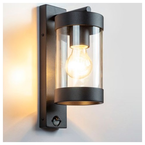 The Frenchy Wall Light in black with a built-in sensor offers both style and functionality. Designed with a sleek matte black finish, this wall light complements modern, industrial, and classic spaces while providing a warm and inviting glow.