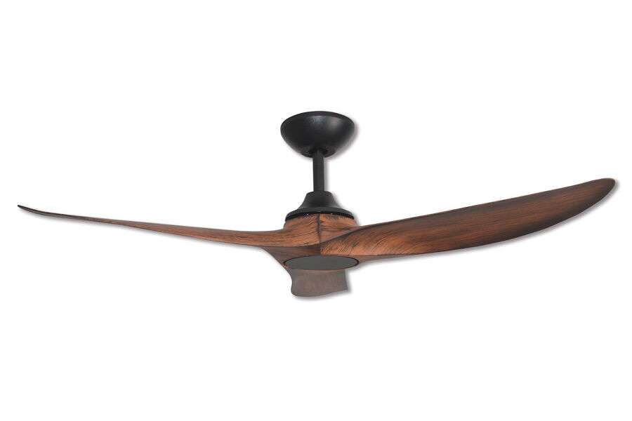 The Hunter Pacific Evolve EC/DC ceiling fan E362 in matt black with koa finished polymer blades offers a striking natural timber-look aesthetic combined with high-efficiency DC performance. Its 122cm blade span makes it ideal for bedrooms, living rooms and open-plan spaces.
