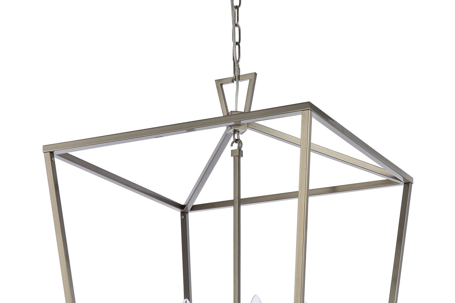 The HUNTLEY COLLECTION brings the warmth and charm of the classic Coach light into your dining room , foyer or living room. Featuring 3, 5 or 6 light styles this sleek clean line meatal frame finished in Satin Nickle compliments any home décor.