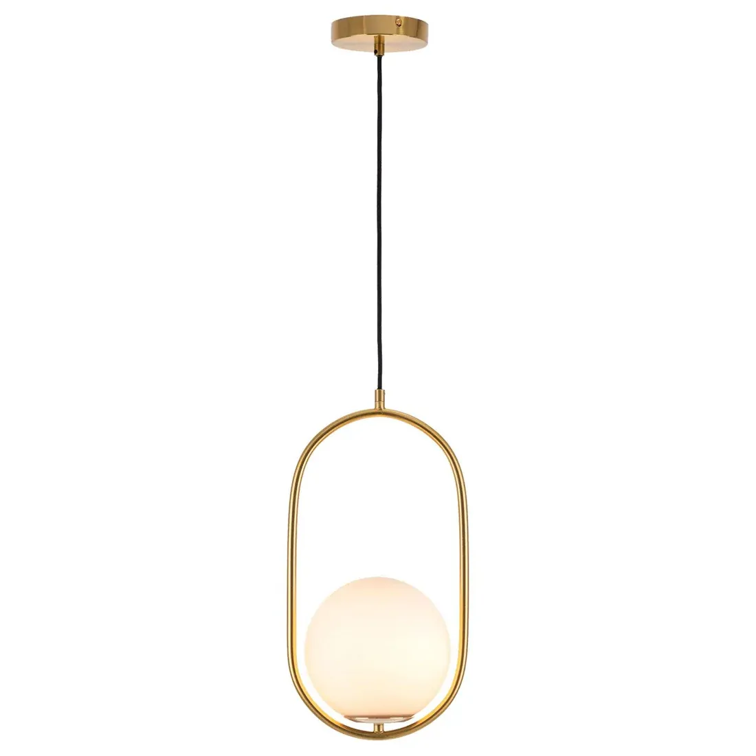 The Mercator Ava 1 Light Pendant MPL505BRS blends modern design with soft ambient lighting, making it an elegant addition to contemporary interiors. Featuring a stylish oval metal frame in a warm brass finish paired with an opal glass ball shade, this pendant creates a refined focal point above dining tables, kitchen islands or bedside tables.