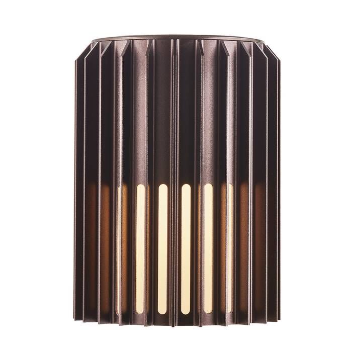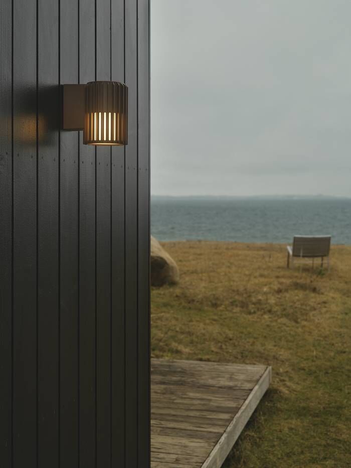 The Nordlux Aludra wall light is a contemporary and sculptural fixture designed by Jacob Jensen Design. It features a cylindrical shape with vertical slats crafted from powder-coated aluminium, creating a striking visual effect as the light filters through. This design not only adds texture and depth but also delivers a soft, ambient glow.