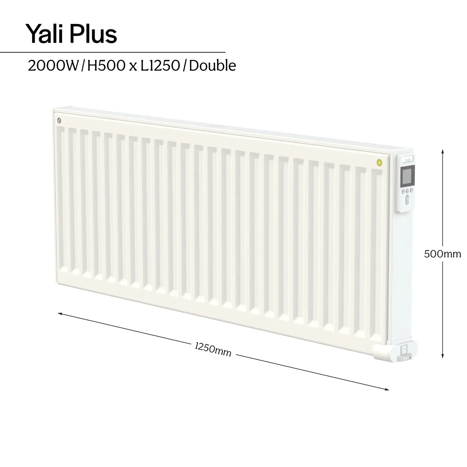 The Yali Plus 2000W electric oil filled radiator in 500mm x 1250mm is a high output double panel electric heater designed for Australian homes that need premium radiant warmth in larger spaces. With its taller 500mm profile, strong heat capacity and advanced thermostat features, this UK made radiator is ideal for living rooms, open plan areas and larger bedrooms where dependable performance and elegant wall mounted styling matter.