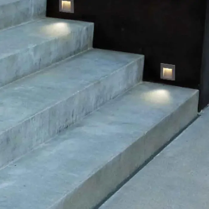 New recessed step light that features durable aluminium construction with powder-coated finish, clear acrylic diffuser and an IP65 weatherproof rating. This step light comes fitted with springs but is also supplied with a canister for concrete installations.