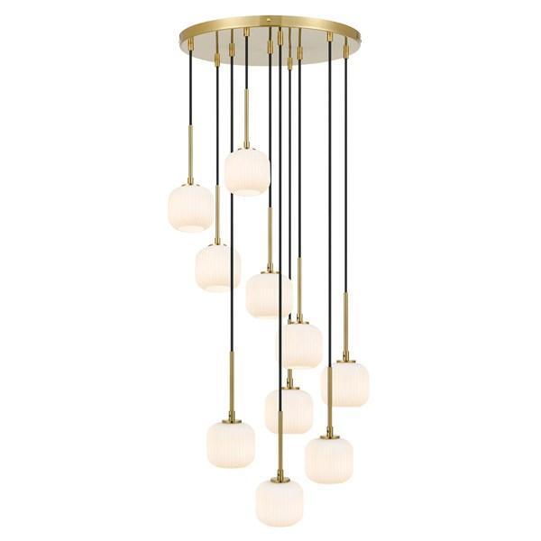 This early century ribbed barrel glass gives a minimalist allure and sleek style for any space in your home. The Bobo collection is best illuminated with a LED twinkle globe accentuating the ribbed surface of the shade. Available in Antique gold with opal matt shade or black with smoke.