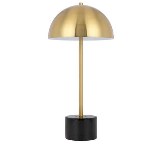 The Domez Table Lamp is a unique and modern design, sure to make a statement in any room. The domed metal shade gives off an atmospheric mood light, creating a warm and inviting atmosphere. The lamp comes in four color combinations, including Antique Bronze with Black Marble or Black Terrazo, and Antique Gold with Black Marble or White Terrazo, so you can choose the one that best fits your decor. The latest on trend metal finishes add sophistication to the lamp. Its luxurious and extravagant design make it a must-have for any stylish home.