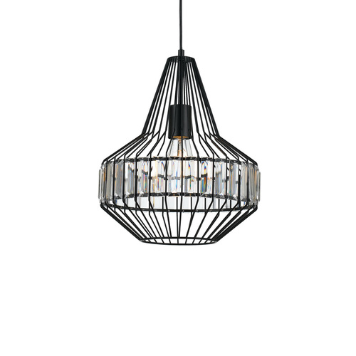 ELMAS 32 Pendant Small Black Frame with Clear Glass Prisms E27 25w Max