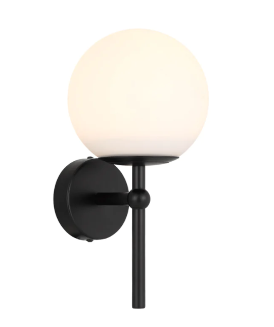 The Eterna 1 Wall Lamp will show true style when added to any luxury living space. A single glass sphere creates a bold offset and a very contemporary feel. Finished in Black and Antique Gold with either Matt Opal or Clear mouth-blown glass. Also available as Twin Wall Lamp and Table or Floor Lamp.